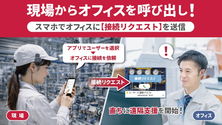 現場-オフィス間のコミュニケーションを実現する遠隔支援機能と現場で撮影した映像のサーバー共有機能を搭載