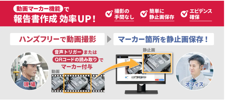 - 重要なシーンを簡単にピックアップ!報告書作成の効率アップに!『動画マーカー機能』活用事例